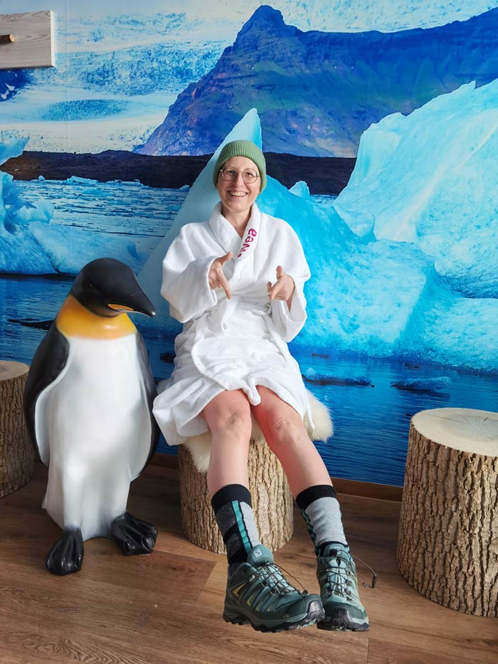 Schnappatmung! „Brrrrrr ist das kalt“. Aber nicht so kalt wie ich erwartet hatte. Tief Luft holen und einatmen. Das war ein Fehler. Mir wurde gleich ein bisschen schwindelig im Kopf und ich spürte einen leichten Druck im Brustkorb.